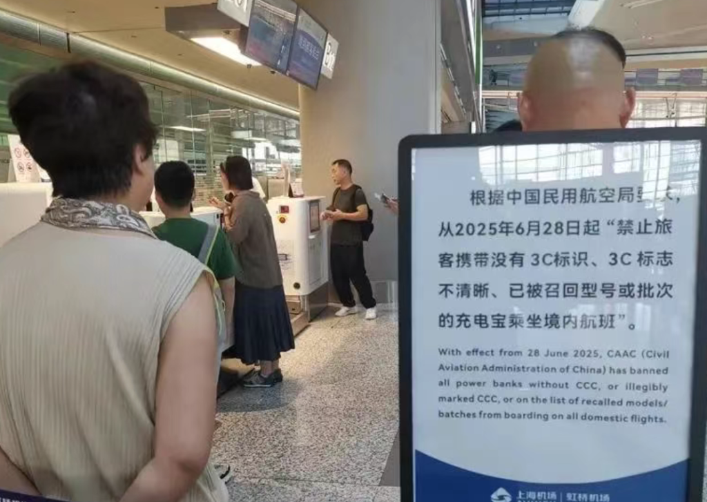On June 28, 2025, a sweeping new rule took effect at Shanghai Hongqiao Airport: travelers are no longer allowed to bring power banks without clear 3C certification labels, with unmarked or recalled models strictly prohibited on domestic flights. As soon as you set foot in the terminal, you can see the change. New signage explaining the ban is posted everywhere—from the main entrance to the check-in counters and all security lanes. Staff members stand by holding placards and offering guidance to help passengers check their power banks before reaching the security checkpoint.